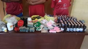 He added that the operatives recovered exhibits which includes two large bags of weeds suspected to be Canadian loud, 300 small cans of substances also suspected to be Canadian Loud, 30 bottles of CSC codeine, 10 sachets of tramadol, 2 sachets of ‘Super Royal’ (Redboy), 12 sachets of Swinol, 12 pieces of molly drugs and 400 empty distribution cans.